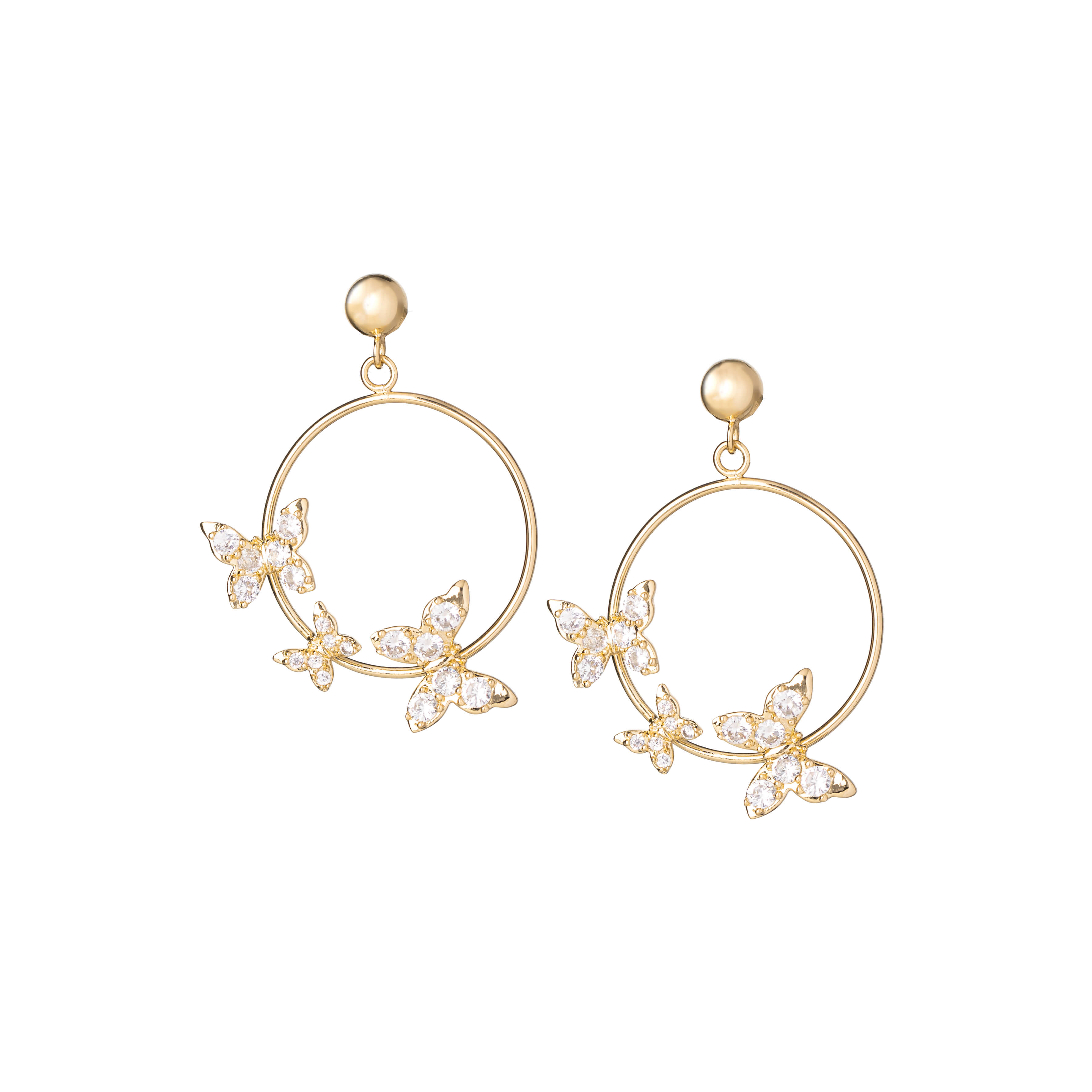A trifecta of style with butterflies delicately floating on airy stud hoops to accent your ear with subtle shine.